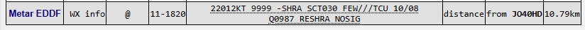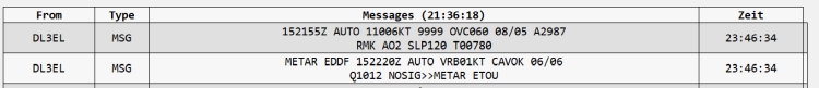 Am Ende der Liste wird der aktuelle Wetterbericht des nächsten Flughafens ausgegeben. Nähere Informationen zum METAR Format.