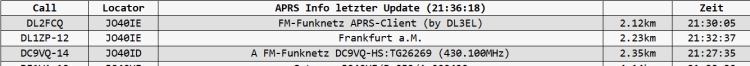 Man kann den Bezugspunkt der Abfrage entweder durch ein APRS Rufzeichen oder einen QTH LOcator angeben und dann die Abfrage mit "Query" auslösen. Wird beides angegeben, so gewinnt der Locator.