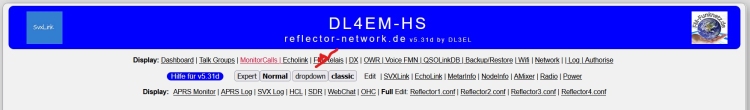 Sobald die Datei dl3el/Reflector1.conf gefunden wird, werden die entsprechenden Buttons im Dashboard