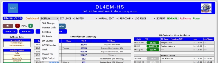 Das Dashboard, ursprünglich als Bediengsmöglichkeit für den lokalen Hotspot gedacht, wurde immer mehr zu einer Oberfäche für den Funkamateur daheim entwickelt.
