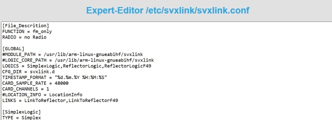 - Im Moment kann nur eine [section] bearbeitet werden, diese muss zu Beginn der Reflectorx.conf eingetragen